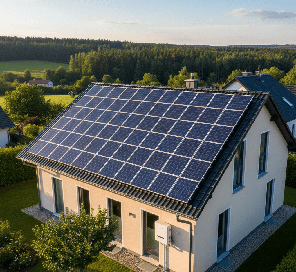 Ponúkame robustné fotovoltaické systémy, ktoré sú navrhnuté presne podľa spotreby a možností vašej strechy. Náš systém je postavený na troch kľúčových komponentoch: vysokoúčinné solárne panely (absorbujú slnečnú energiu), invertor (premieňa jednosmerný prúd na striedavý pre vašu domácnosť) a voliteľné úložisko energie (batérie pre maximálne využitie prebytočnej energie aj po západe slnka). Zabezpečíme pre vás kompletný proces. Od bezplatnej obhliadky, návrhu optimálneho výkonu, až po profesionálnu montáž a vybavenie všetkých potrebných povolení a dotácií.